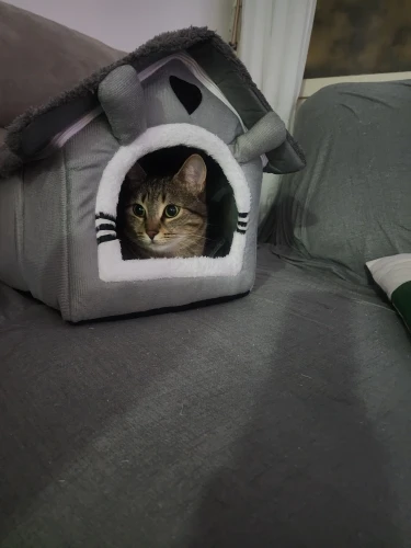 Haustiere lieben Rückzugsorte. Das semi-geschlossene Pet House bündelt Wärme, dämpft Reize und schafft einen festen Platz – weg vom Sofa, hin zur Kuschel-Höhle. Abnehmbares Dach, wendbares Kissen, rutschfester Stand: clean, cozy, ready to nap.