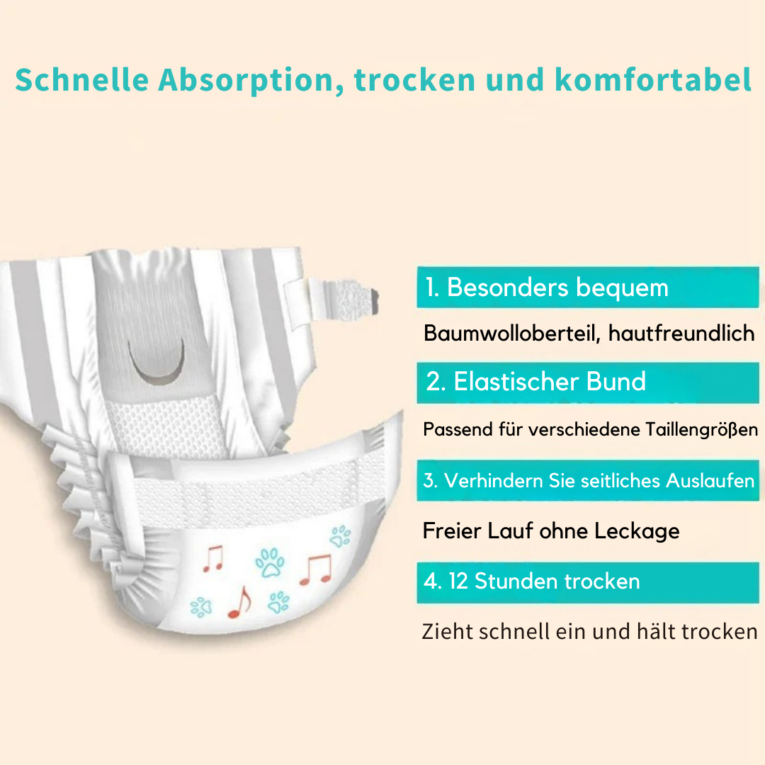 Die Premium-Haustierwindeln bieten maximalen Auslaufschutz, passen sich perfekt an und bleiben auch bei Bewegung sicher. Dank atmungsaktiver Materialien fühlt sich dein Liebling jederzeit wohl – ob zuhause oder unterwegs.